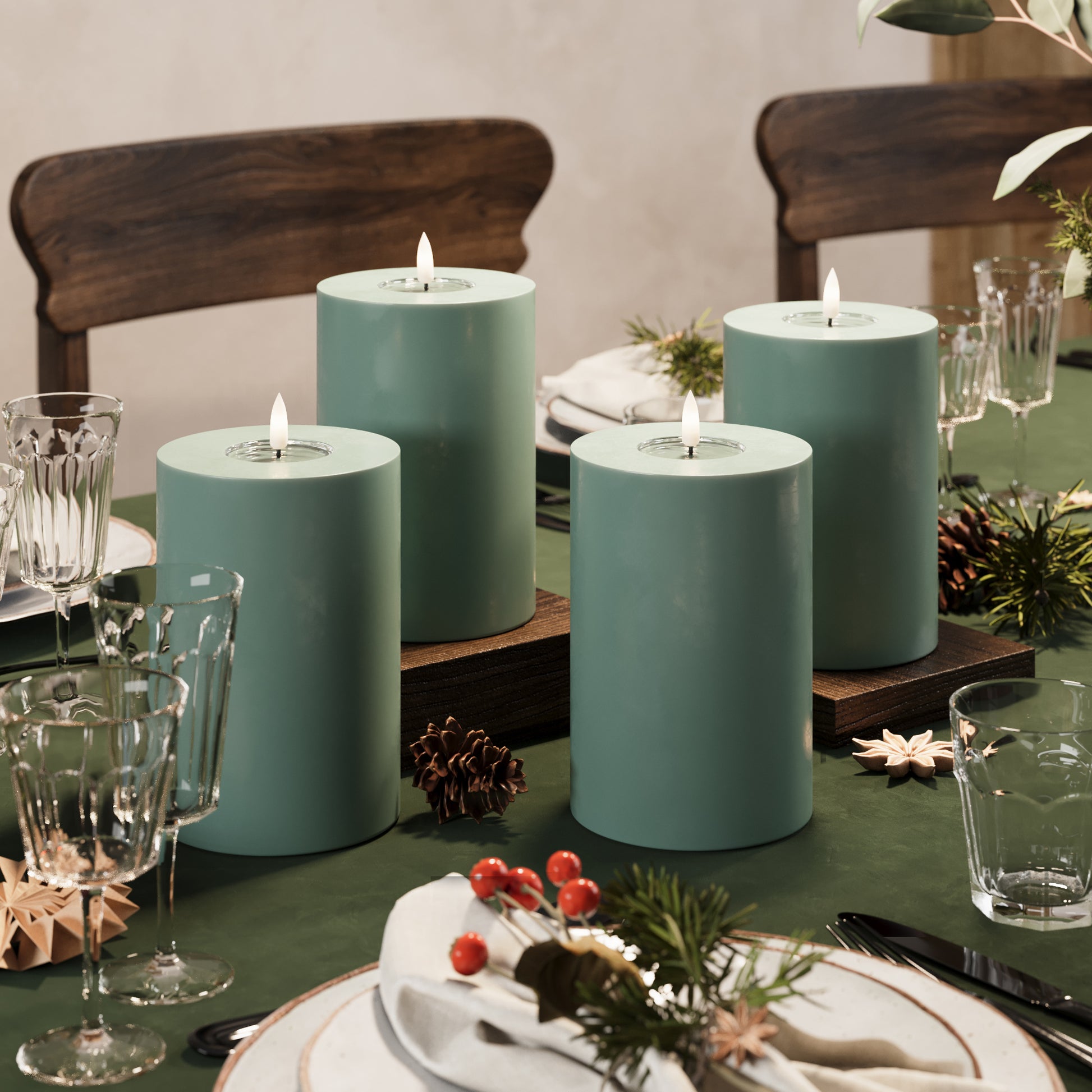 LED bloková světla Ø 10 x 15 cm Jadeitově zelená - 4 ks