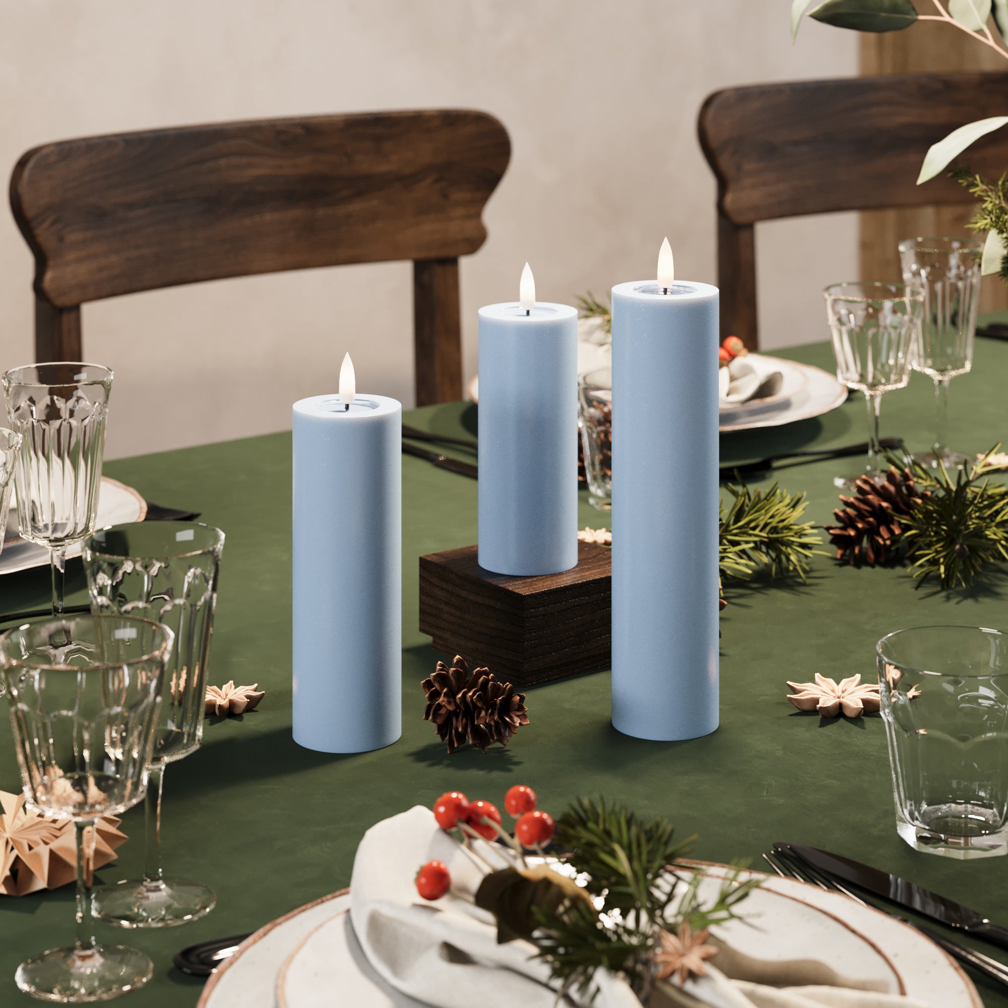 LED-Blockkerzen Ø 5 x 12,5 cm Eisblau – 4 Stück