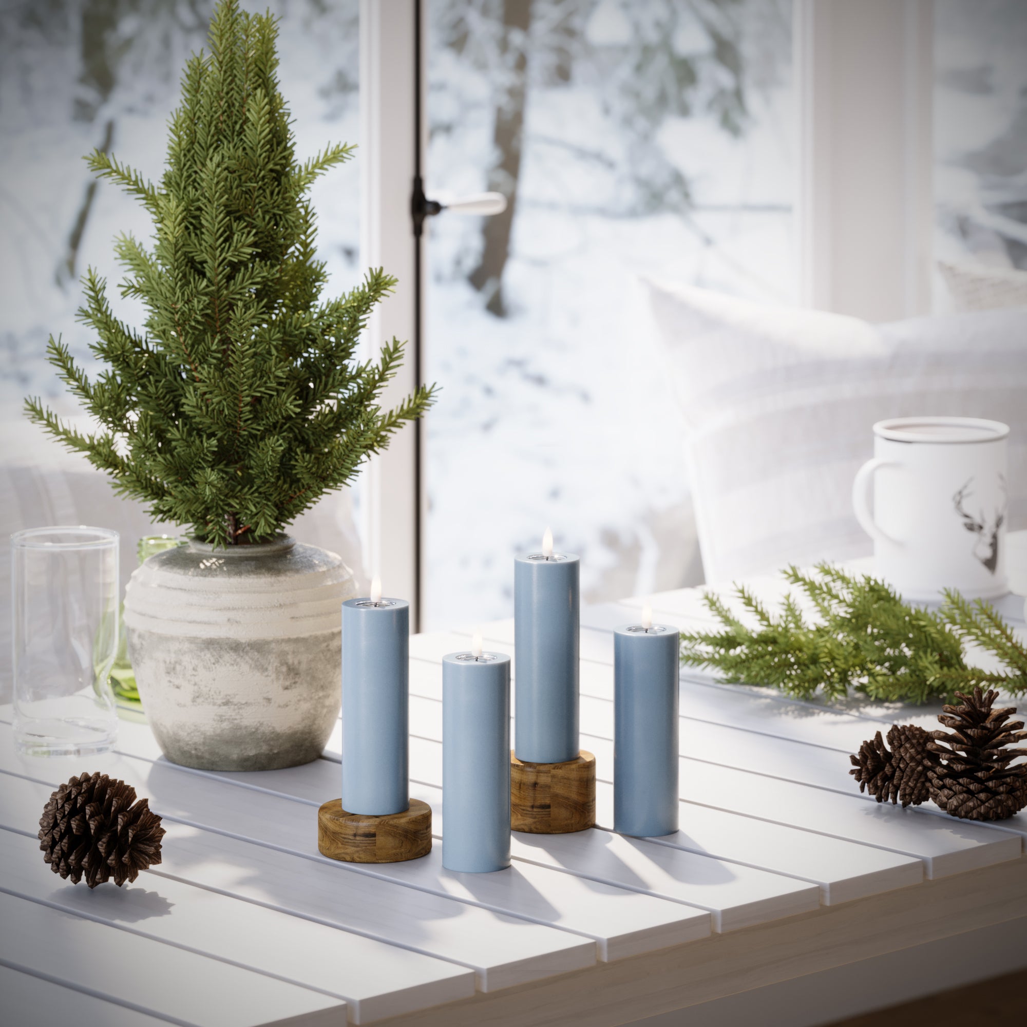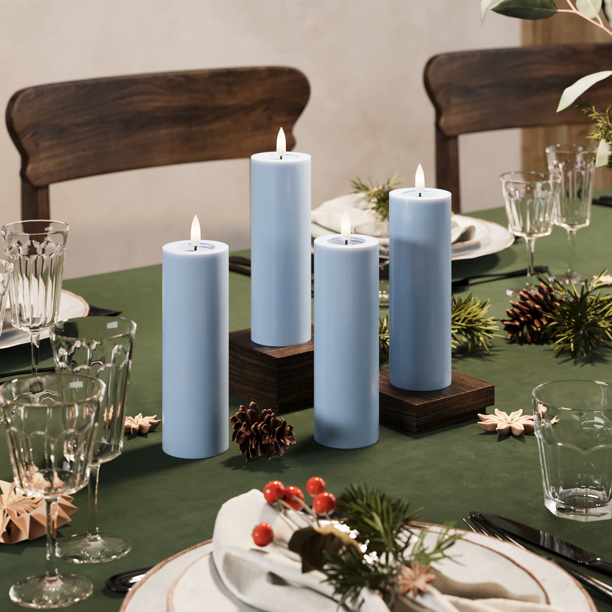 LED-Blockkerzen Ø 5 x 15 cm Eisblau – 4 Stück