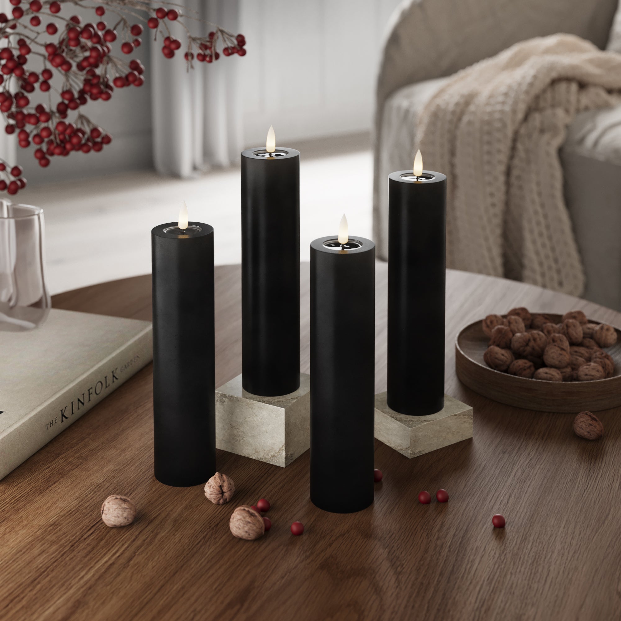 LED-Blockkerzen Ø 5 x 20 cm Schwarz – 4 Stück