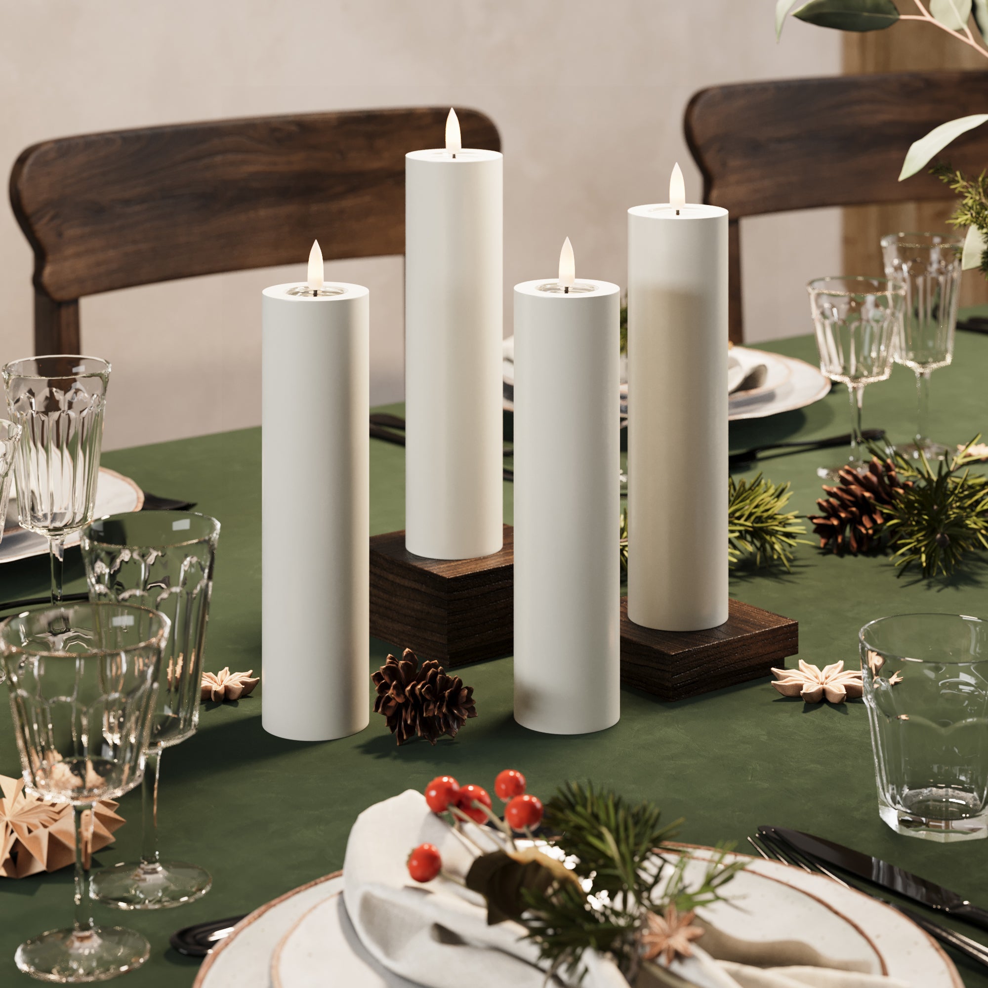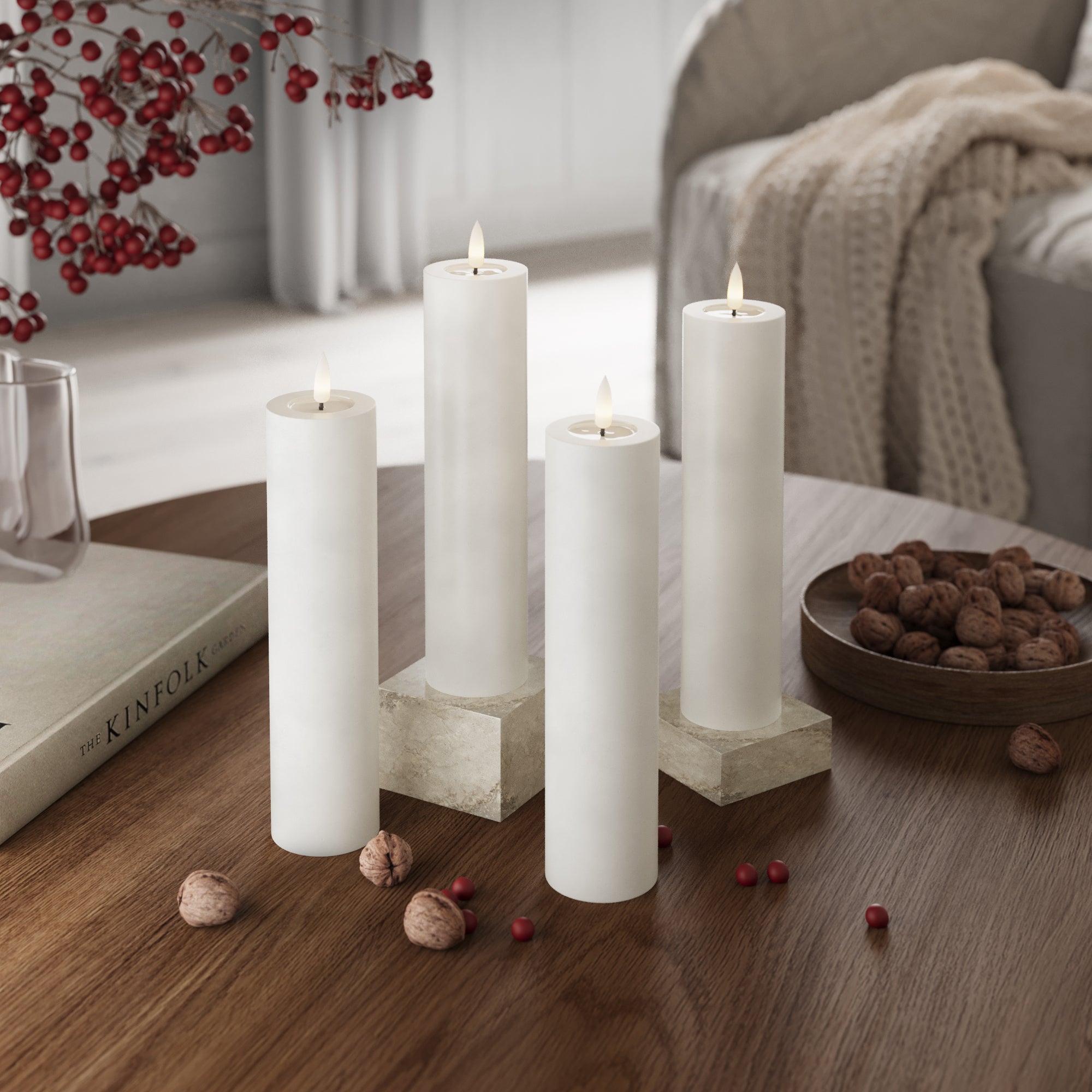 LED-Blockkerzen Ø 5 x 20 cm, Weiß – 4 Stück