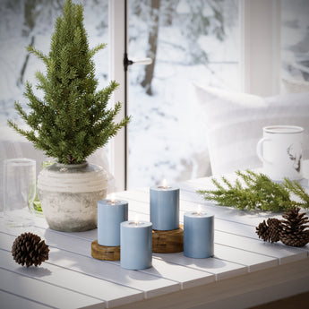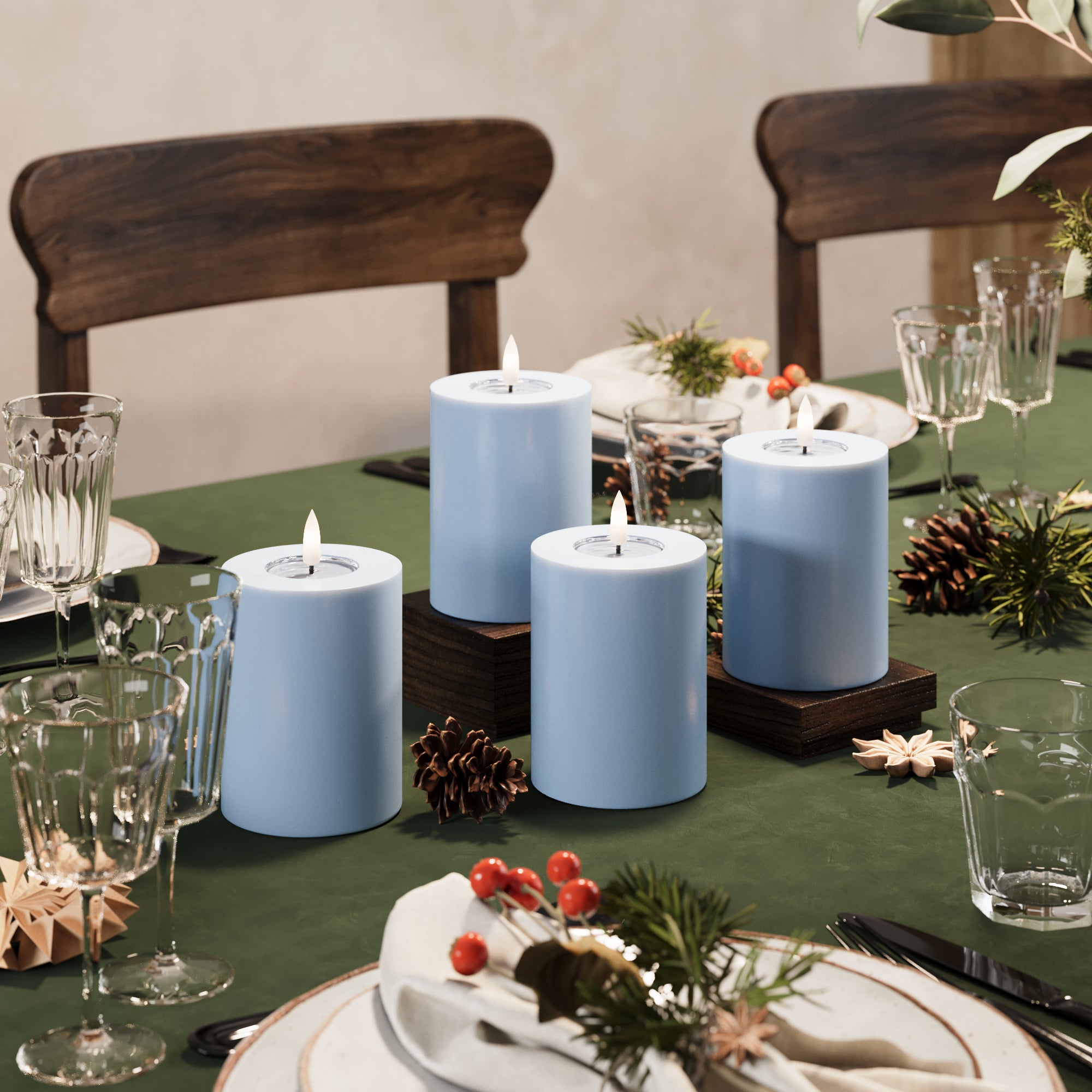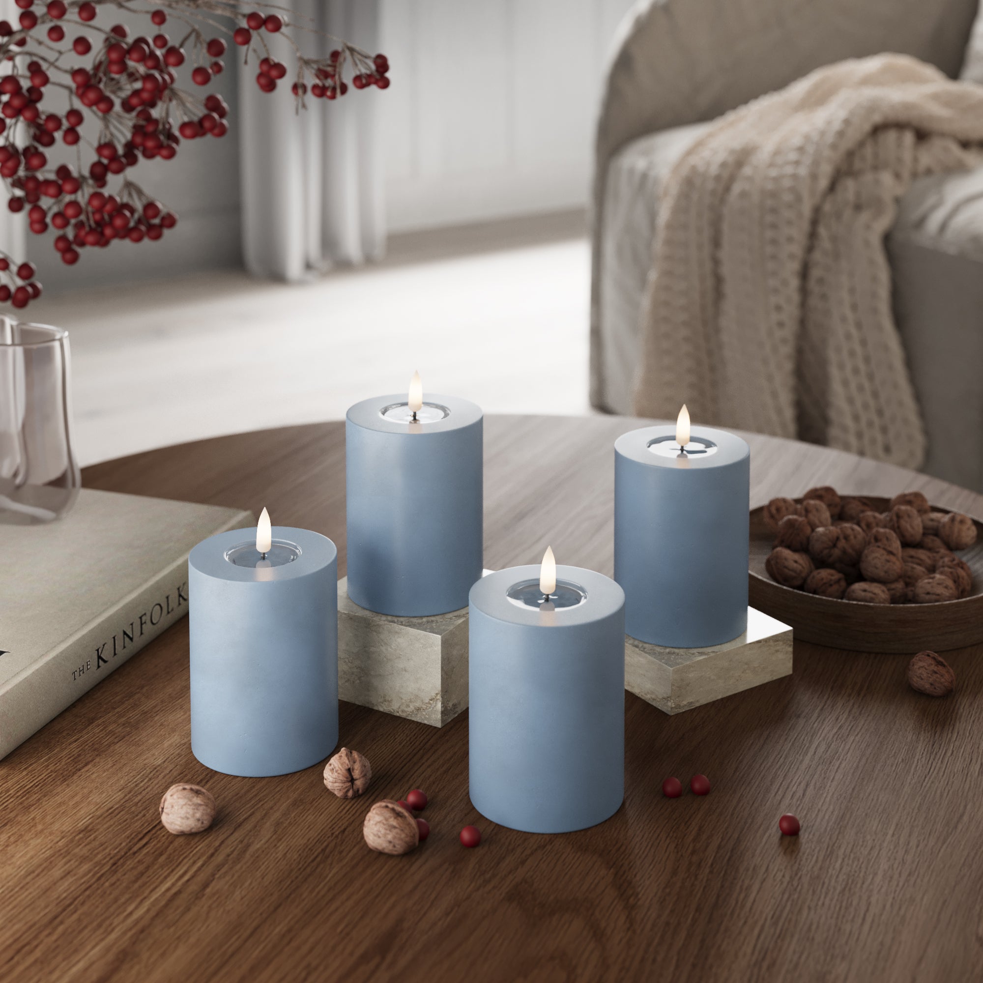 LED-Blockkerzen Ø 7,5 x 10 cm Eisblau – 4 Stück