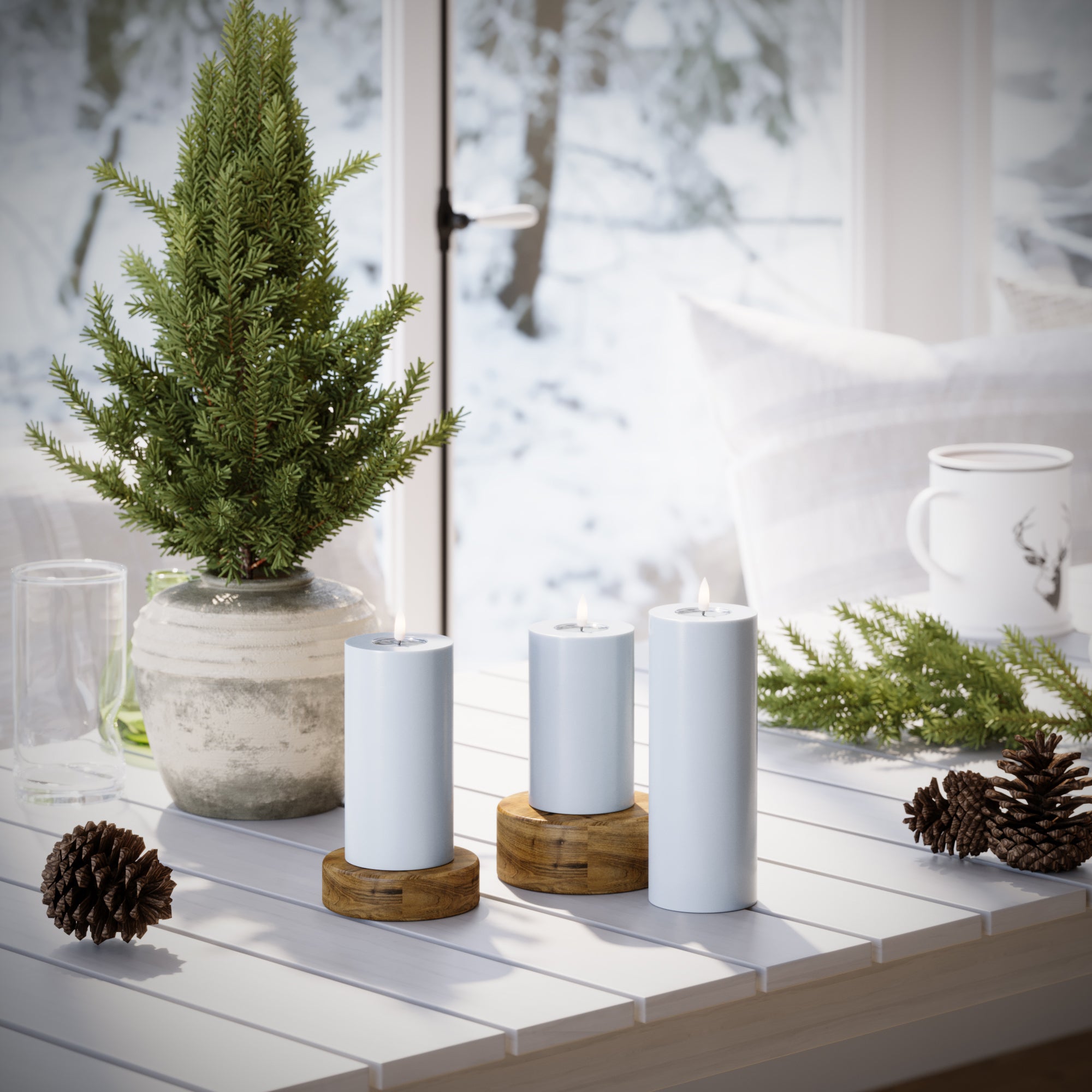 LED-Blockkerzen Ø 7,5 x 12,5+ 15 + 20 cm – Mist Blue