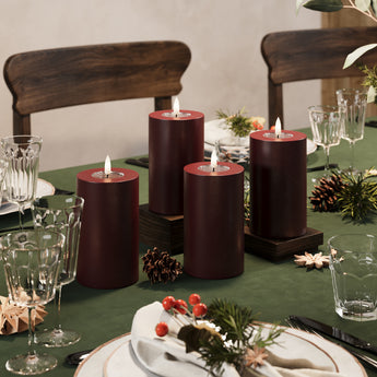 LED-Blockkerzen Ø 7,5 x 12,5 cm Burgunderrot – 4 Stück