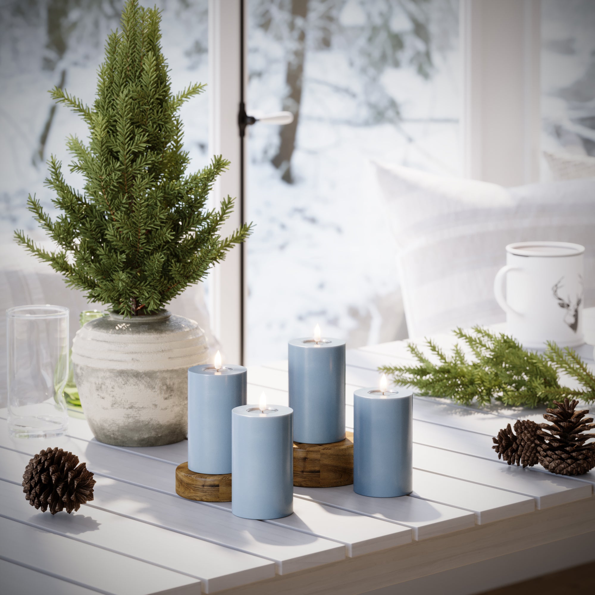 LED-Blockkerzen Ø 7,5 x 12,5 cm Eisblau – 4 Stück