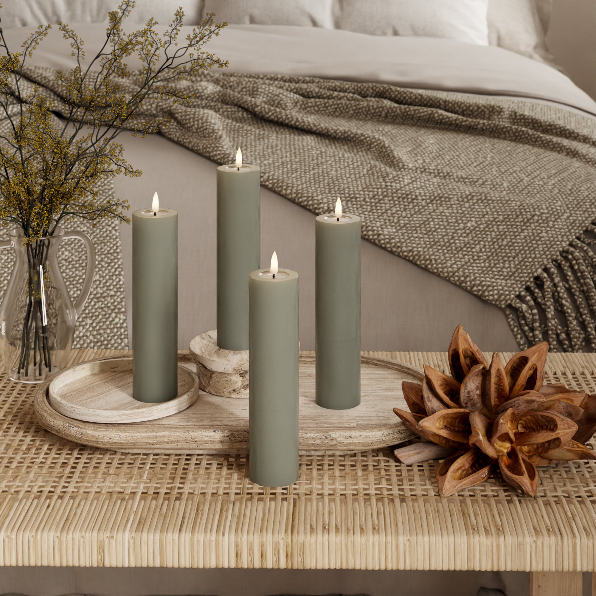 LED Pillar candle Ø 5 x 20 cm Sage Green - 4 pcs