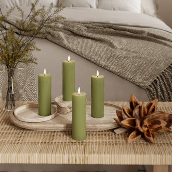 LED Pylväskynttilä Ø 5 x 15 cm Oliivinvihreä - 4 kpl