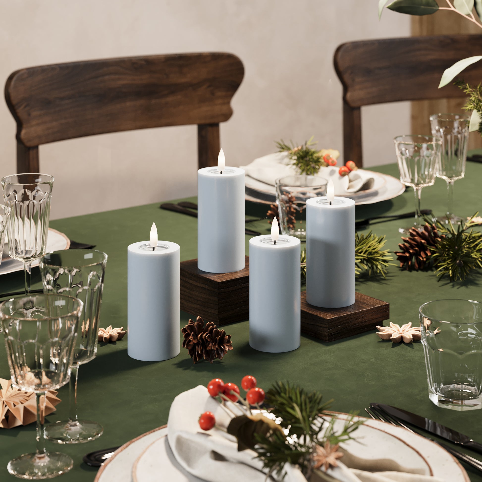 I denne pakke får du LED bloklys i farven Støvet blå i flere størrelser.