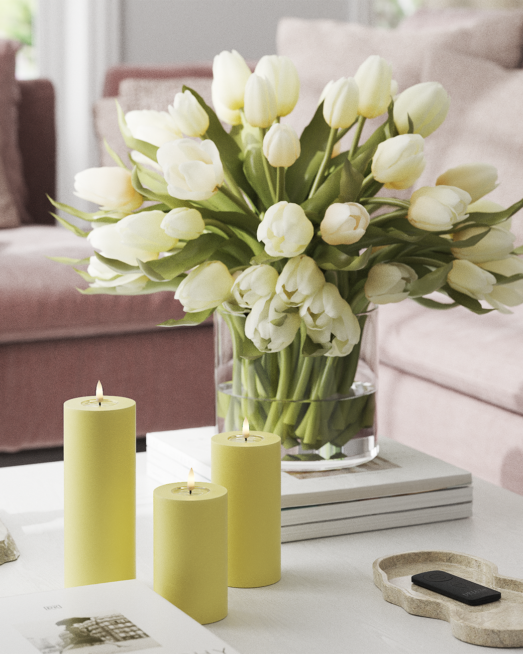 Denne forårs bloklys pakke består af 3 LED stearinlys i en smuk lysegul nuance, der passer perfekt til forårets dekorationer og borddækning. Farven tilfører hjemmet et let og lyst udtryk og er ideel til både påske, forårsbordet og sæsonens hyggelige stunder.