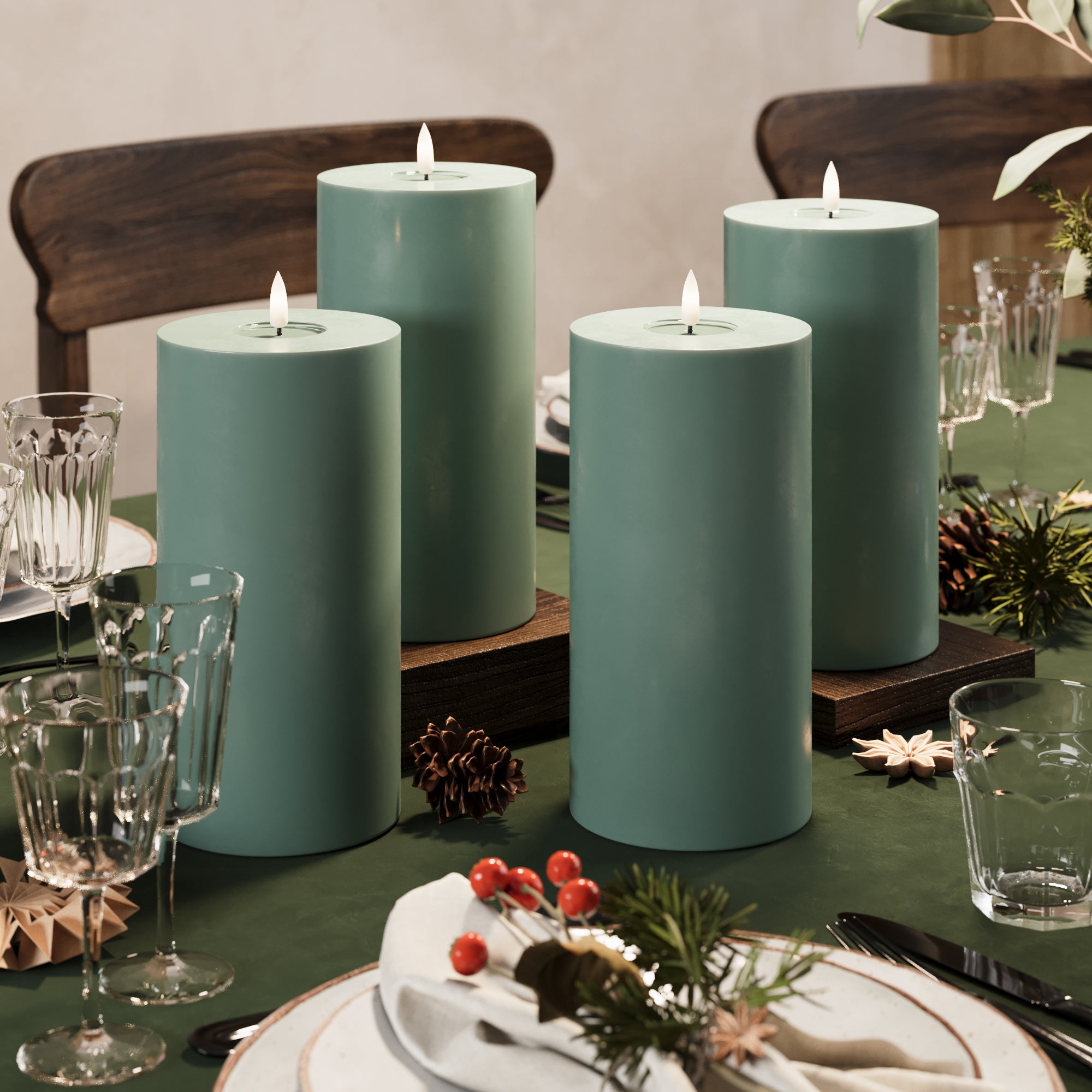 LED Stompkaarsen Ø 10 x 20 cm Jadegroen - 4 pc's