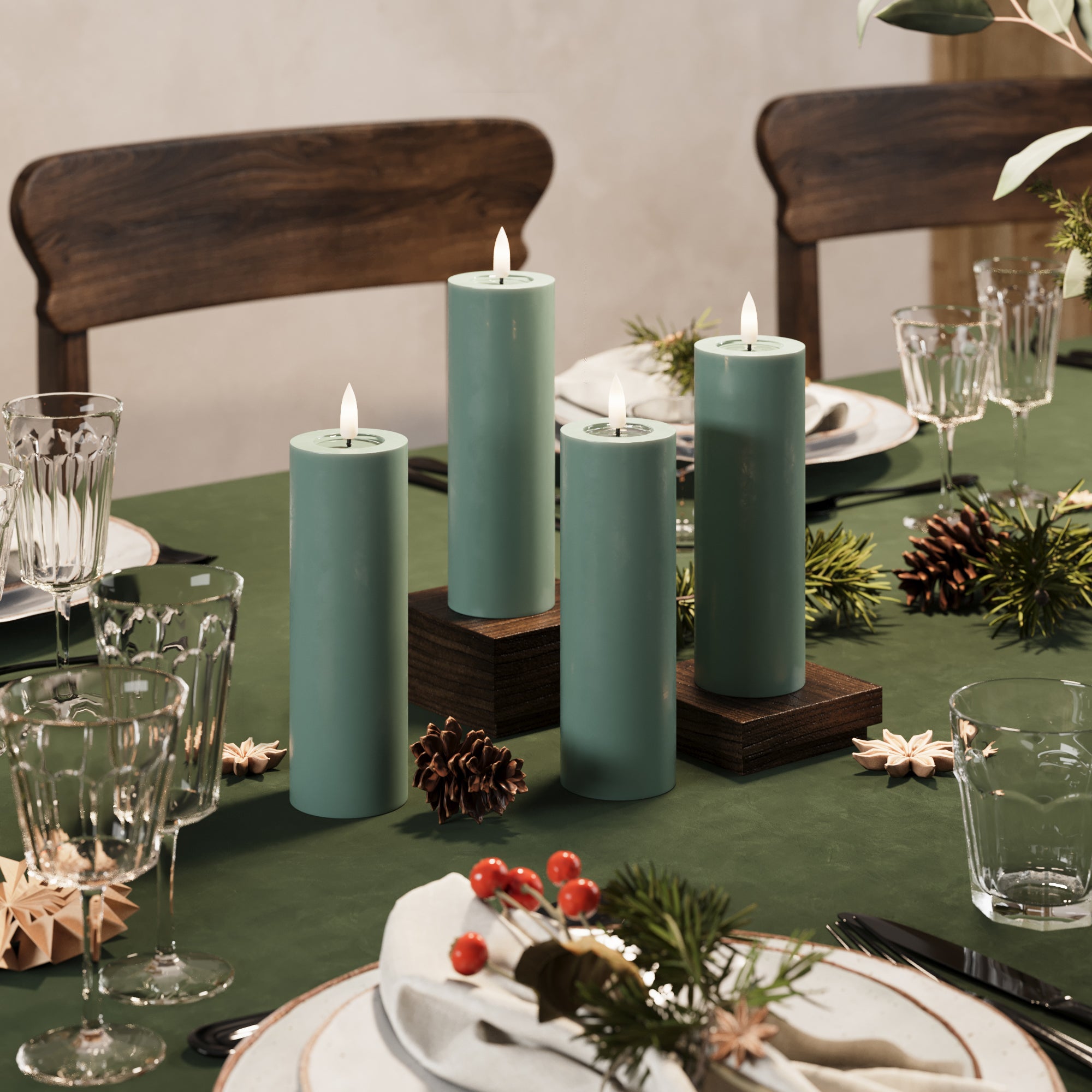 LED Stompkaarsen Ø 5 x 15 cm Jadegroen + 4 pc's