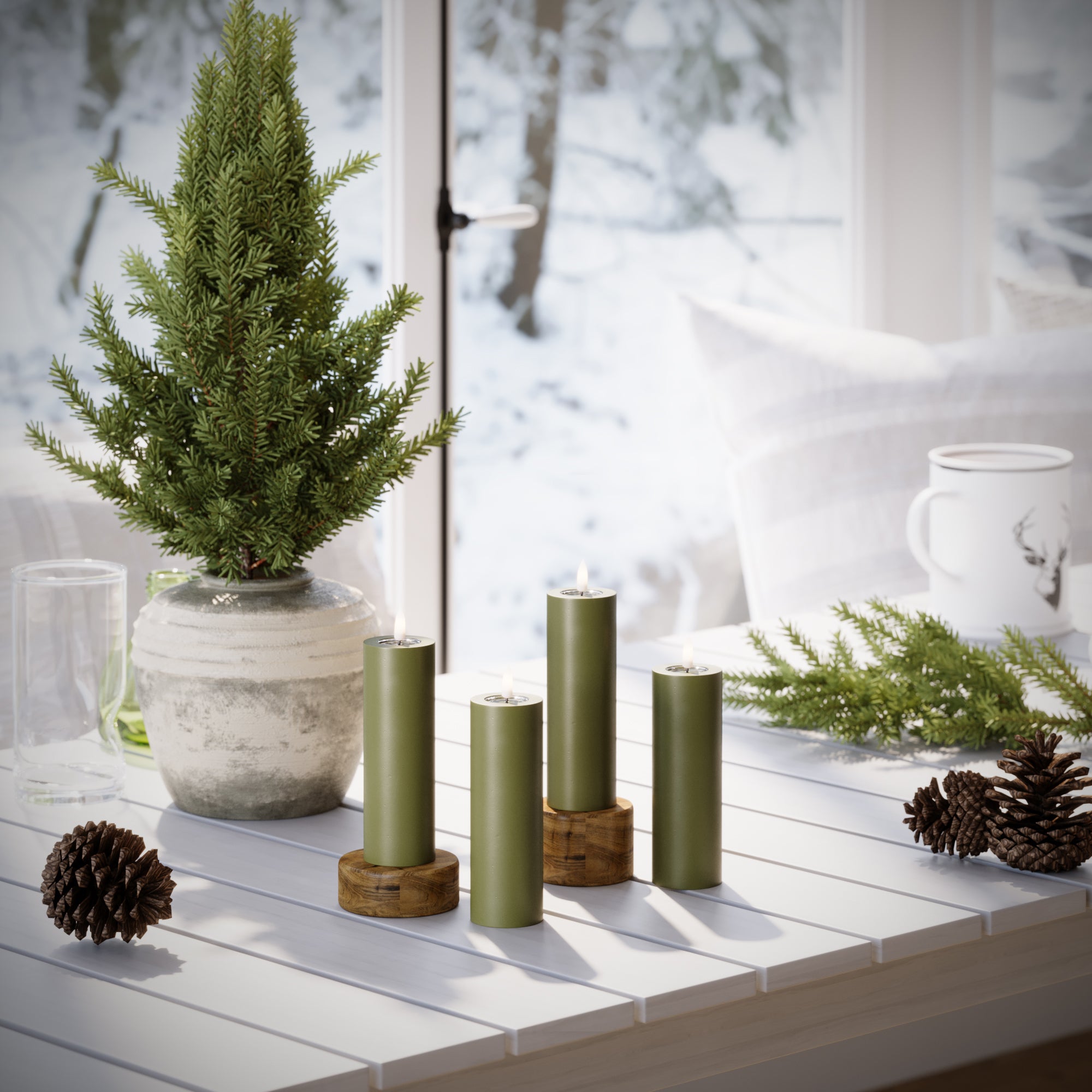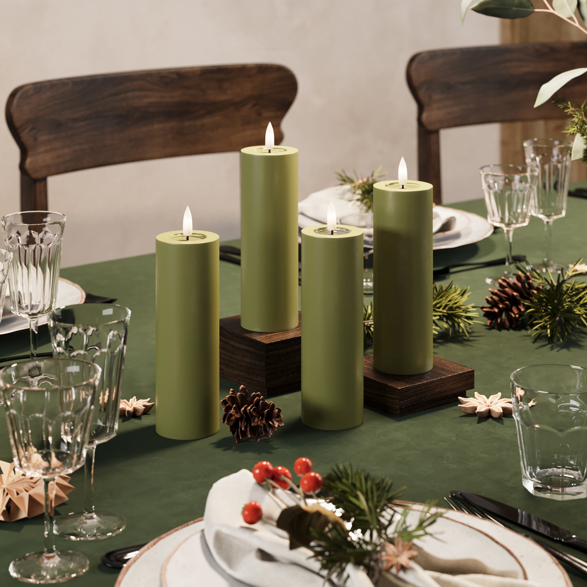 LED Stompkaarsen Ø 5 x 15 cm Olijfgroen - 4 pc's