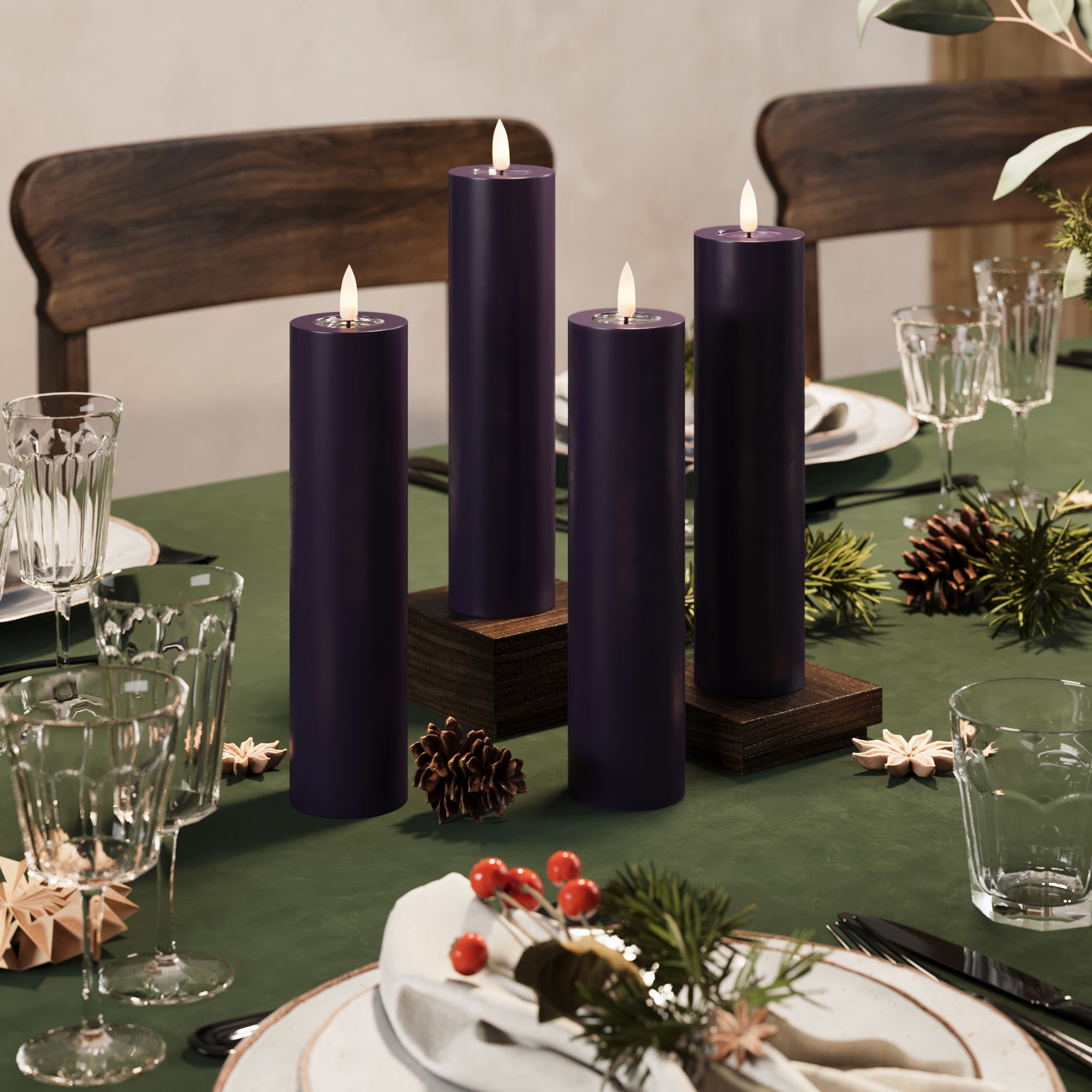 LED Stompkaarsen Ø 5 x 20 cm Donkerpaars - 4 pc's