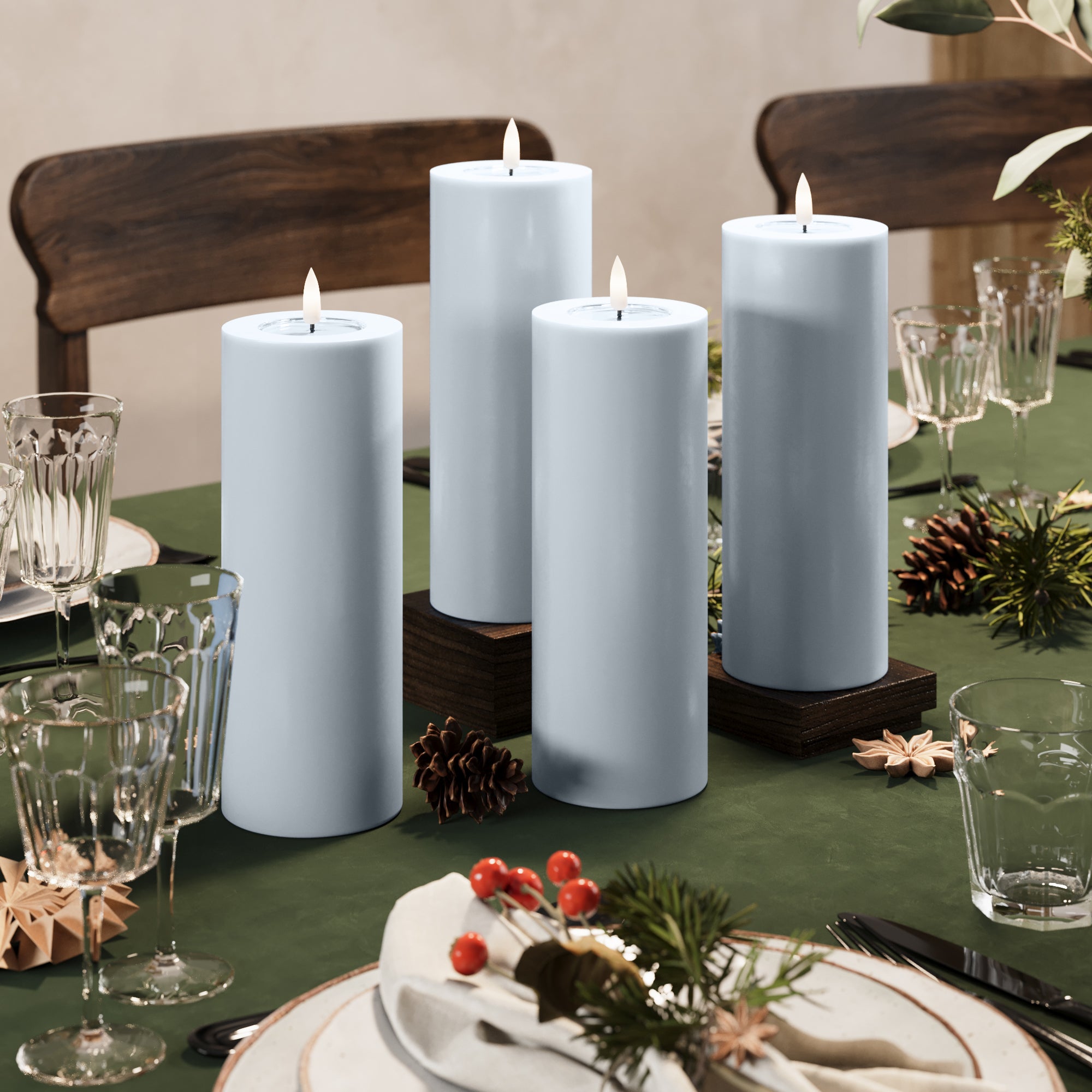 LED Stompkaarsen Ø 7,5 x 20 cm Vergrijsd blauw - 4 pc's