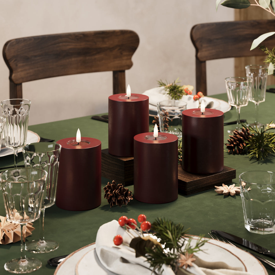 LIDERADO Vela pilar Ø 10 x 10 cm Borgonha - 4 pcs